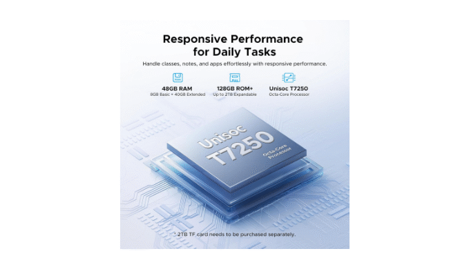 【T7250-Octa Core+48GB + 128GB/2 TF】Aorlym gaming tablet features the 12nm low-power Unisoc T7250 octa-core processor, delivering outstanding performance and power efficiency. Aorlym P11 android 16 tablet with 48GB of unified memory (8GB RAM + 40GB extended LPDDR4X) and 128GB of UFS high-speed storage, it enables seamless multitasking and smooth operation of multiple applications simultaneously. Say goodbye to lag and enjoy consistent smoothness even with prolonged use.