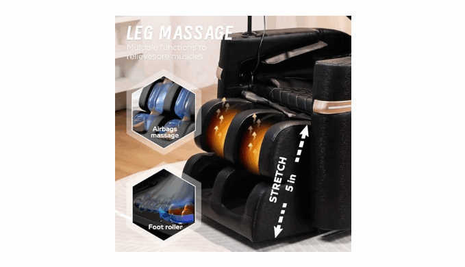 Foot Relaxation: The massage chair is equipped with a retractable footstool to accommodate different heights. Located at the base of the foot, kneaded with a roller massage, offers a soothing massage style. As the rollers spins, it stimulates acupuncture points, with the heating function of the legs, effectively promotes blood circulation, relieve leg and foot muscle tension
