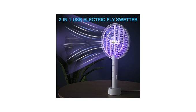 Easy to Operate:Its convenience is embodied in its portability and easy charging way. The bug zapper racket is portable and has comfortable hand feeling. Its automatic mode can also free your hands. It is useful for indoors and outdoors. As for the battery charging, you can switch off the fly zapper racket, insert it into the charging base, and then connect the base\'s USB cable to an available power source