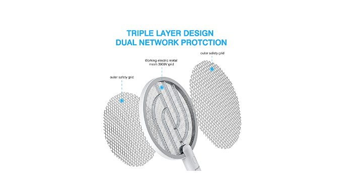 Safety Design:To ensure its safety in use, it is a electric fly swatter with 3-layer safety net that can avoid the danger of directly touching the high-volt grid. In addition, this fly swatter has a great circuit-protection device to effectively prevent overcharge, overdischarge, short circuit or other potential circuit problems. After turning off the switch, it will automatically clear the remaining energy on the surface of the high-voltage grid