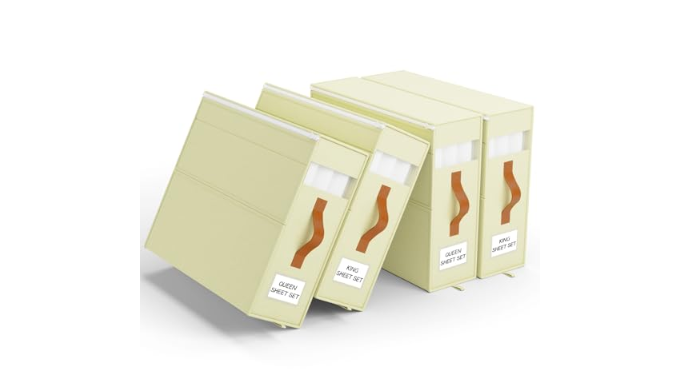 【4-Piece Sheet Organizer】 Keep your sheet closet organized and beautiful with this collapsible linen fabric organizer, conveniently designed to make storing your linens a breeze