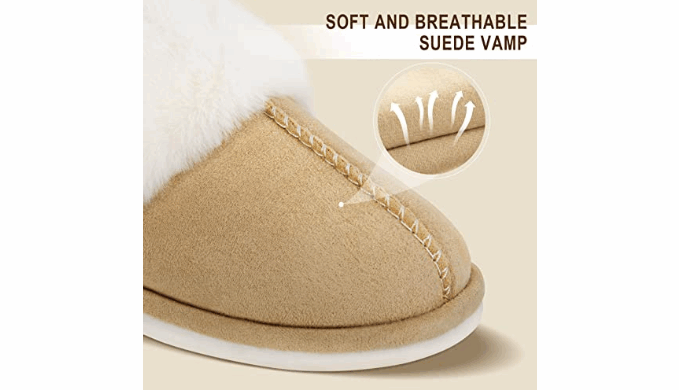Warm and Trendy in 2025: These bedroom slippers crafted with a breathable faux suede upper and a fluffy faux fur collar wrapping your feet from ankle to heel for 360-degree warmth. The house slippers are decorated with a classic texture on the upper by sewing techniques that enhance your fashion statement. The modern look of the women\'s slippers helps you transition effortlessly from home to street photography