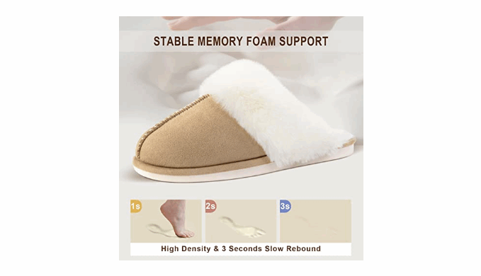 Cushioned Memory Foam: The home slippers are equipped with thick EVA midsole for shock absorption and high density memory foam for stable support that fits perfectly to your foot shape, so that you get the feeling of walking on a fluffy pillow and your feet will be provided with relaxation and support, bringing you a luxurious feel and unbeatable comfort