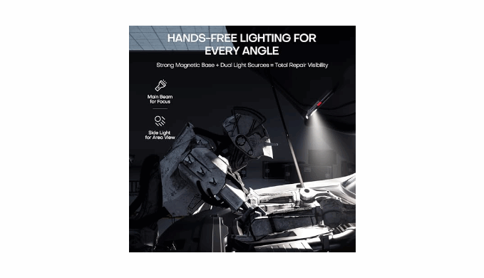 【7 Versatile Light Modes – Dual Source for Every Scenario】 Main beam includes low and high brightness. Side light features low/medium/high/ultra-bright white light plus a red-blue strobe for alerts. Whether for camping, repairs, or emergencies, this flashlight rechargeable adapts instantly to your needs.