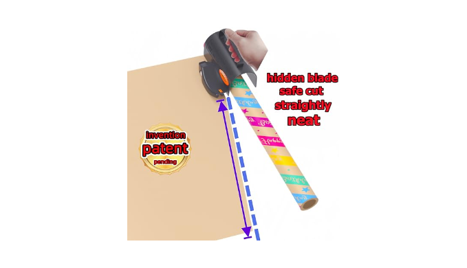 Safe & easy cutting :We just need to hold the handle and gently push to complete the easy cutting of the wrapping paper. The cutting process is very safe, the hidden blade design, so our hands can not touch the blade at any Angle. The 3 replaceable blade assemblies are also equipped with blade protection covers, which is very safe.we love mermaid and glitter foil colorful rainbow wrapping paper ,so easy to cut birthday wrapping paper.