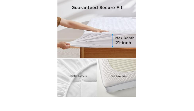 Secure, Non-Slip Design: The mattress cover is designed for a secure fit with elastic corners that keep it in place on mattresses up to 21 inches thick. Sleep soundly without the mattress cover slipping or bunching during the night.