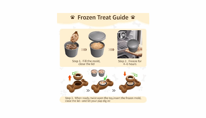 Easy to Clean & Convenient Storage: Designed with a smooth, wipeable surface, this toy can be easily cleaned by hand washing or dishwasher. Separate treat mold boxes prevent messiness and keep frozen treats fresh, while the lids block any odors in the freezer!