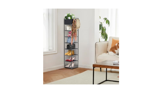 SLIM SHOE RACK FIT ANY SPACE: Ultra-skinny profile fits snugly by doors, hallways, or corners. Perfect for families, students, and minimalist homes!