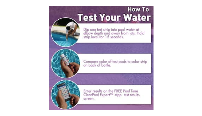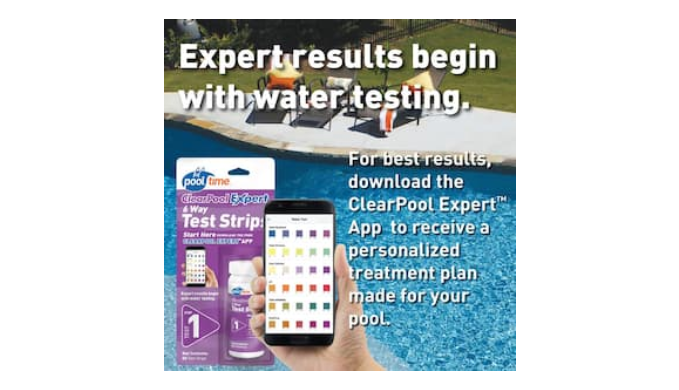 Pool Time Clear Pool expert 6-Way Test Strip provides instant, accurate pool water analysis to help you keep your pool properly balanced. Supported by the Pool Time Clear Pool expert water testing app or online Water Testing Analysis you will receive free rapid water analysis, treatment plans, product recommendations, problem solving videos and test history results. Download the Pool Time Clear Pool expert app for your personalized pool water analysis from the apple or google play store.
