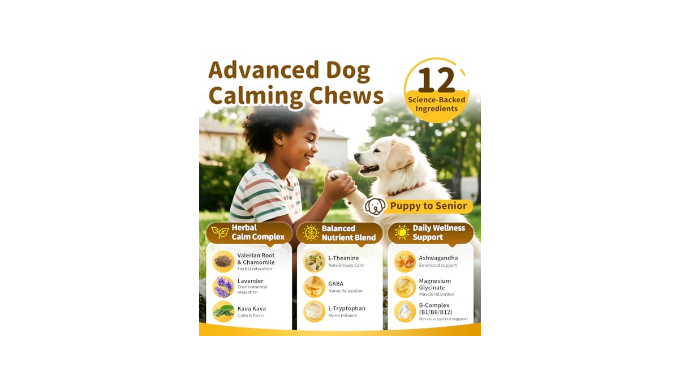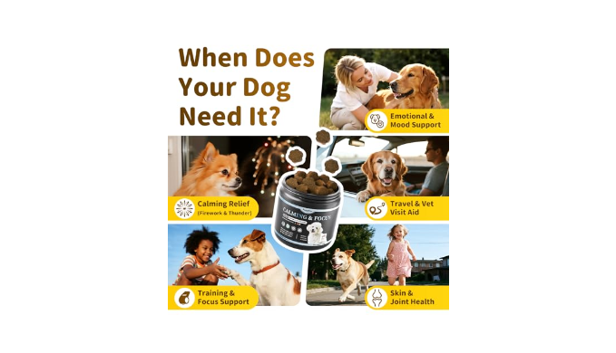 Puppy & Dog Calming Treats for Anxiety & Stress: Formulated to help with common triggers like separation, travel, barking, fireworks, training, and thunderstorms. Regular daily use of these calming treats supports balanced behavior and emotional stability over time.