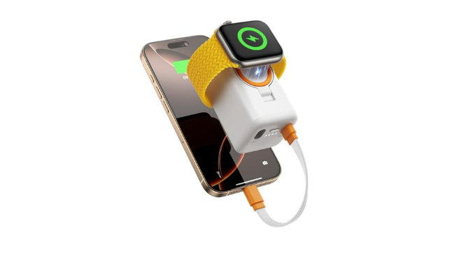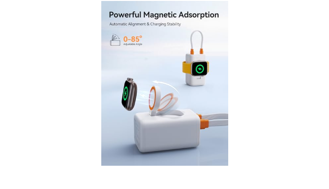 【Built-in Dual-Port Extractable Charging Cable】The apple watch power bank comes with a detachable charging cable,so you don\'t need tocarry extra cables,convenient for you to charge your devices anytime and anywhere,no more worries about power shortage emergencies when you are out.Meanwhile,you can plug the cable back into the apple watch portable charger to form a ring,cable keychain storage design,Ultra Compact& Convenient.you can easily put this travel charger for apple watch in your pocket or hang it on your backpack,it\'s a great companion for traveling (Tip:Recommended to use the cable that comes with the product.Besides that,its dual ports only support for Apple data cable insertion)