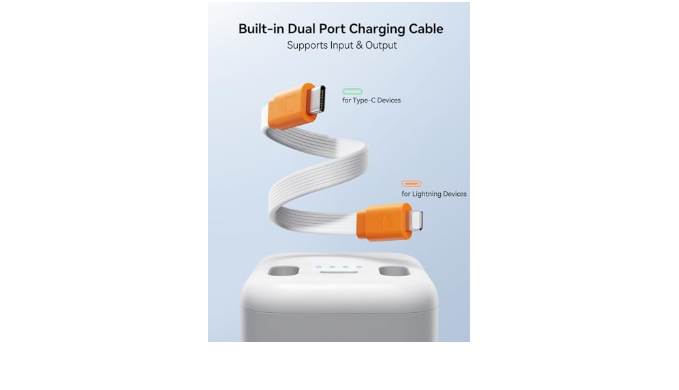 【Designed for Apple Watch/iPhone/android/ Airpods】Upgraded Joyroom 3 in 1 Portable Charger for Apple Watch Series 10/ 9 /8 /7 /6 /5 /4 /3 /2 /SE /Ultra 2 /Ultra; Built-in dual-port charging cable which supports input and output.Type-C charging port can charge iPhone 16/15 series / Samsung / LG / Google / Huawei / Airpods and all devices that support USB-C, for Lightning charging port can charge iPhone 14/13/12 series. The 5000mA portable charger can charge iwatch about 8-10 times, iPhone 16 about 1-1.5 times and AirPods about 6-8 times; meanwhile, it can fully charge itself in just 2.5 hour