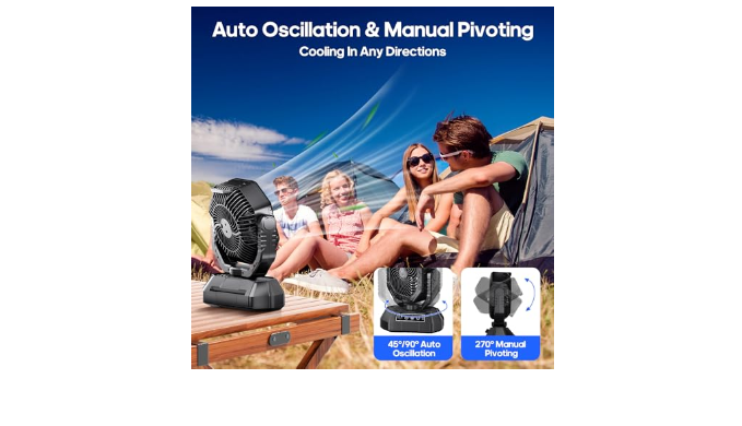 【90° Auto - Swing & 270° Manual Spin】:This portable fan rechargeable combines the best of both worlds. Automatic 90° oscillation provides effortless, all-around even airflow coverage and the 270° manual rotation for pinpoint cooling. You can precisely direct the airflow to every nook and cranny, guaranteeing maximum comfort in any situation.