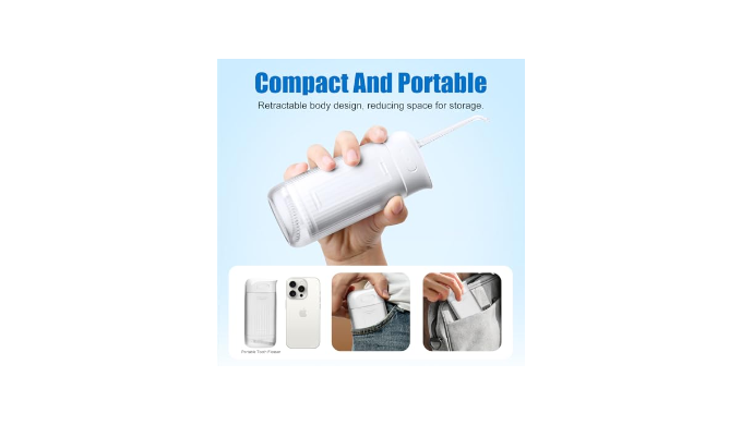 Portable Water Flosser for Travel, Mini Cordless Oral Irrigator for Teeth, Rechargeable with Telescopic Tank, Adjustable Pressure, IPX7 Waterproof, Compact for Braces, Sensitive Teeth & Home Use - Posted 294 days ago