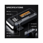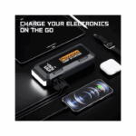 Power Bank & LED Flashlight: The Car Starter also serves as a power bank with two USB ports, including a QC3.0 port that charges devices up to 75% faster than standard chargers. It can charge your smartphone or other USB-powered devices while you\'re on the go. Additionally, it comes with a 600-lumen LED light featuring three modes—Flashlight, Strobe, and SOS—ideal for signaling if you\'re stranded by the road.