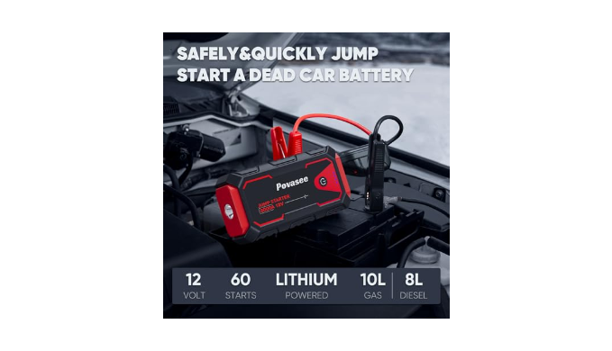 【3000A Car battery jump starter】: With Povasee 3000A jump starter can jump start 10L GAS/8.0L DIESEL engines within seconds. Even if the battery voltage is too low (below 9V), pressing the “RST” button will help the engine to restart.About 60 quick jump starts on a single charge. Suitable for 12V passenger cars, trucks, motorcycles, boats,tractor etc.