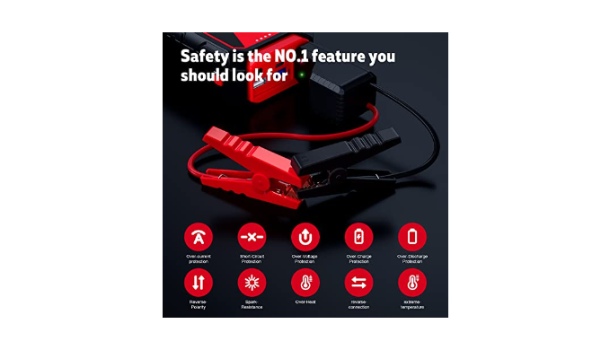 【10 Intelligent Secure Protection& Stable Operation】: Our car jump starter have 10 protection systems (reverse polarity, reverse charge, over discharge, reverse connection, short circuit, over charge, over current, over heat, spark resistance), A30 jump pack for car battery ensure your safety during using and the jump pack can work in -22°F ~ 140°F, even in any extreme weather