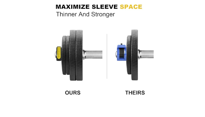 【Maximize Sleeve Space】: Weight clips 1-inch width,takes up half the space of a regular barbell collars. Barbells collars provide ample room to load up the bar with more weights. Whether you\'re using a bulky bumper plate or a small dumbbell handle, our thinner collars allow you to maximize weight capacity and optimize your lifting potential.