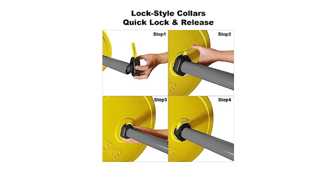 【Easy to Use】: Barbell clips use locking mechanism to keep the collar in place, quick install and release, fully enhance the time efficiency, you can quickly switch the barbell plates during training.