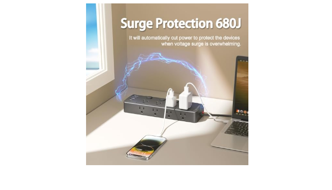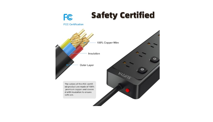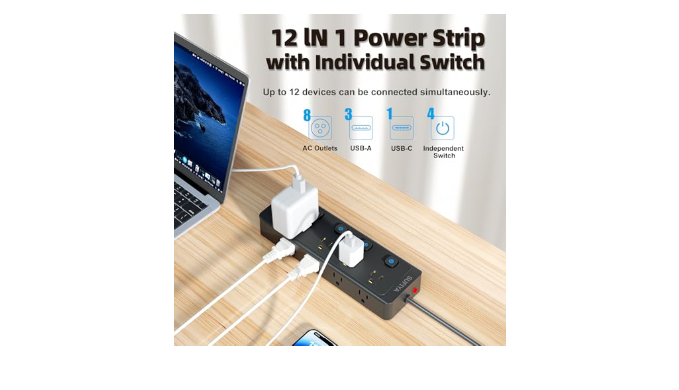 【Multiple Safety Protection】This power strip with individual switches has an overload switch that automatically cuts off power when overloaded, protect the devices from overvoltage, overcurrent and short circuits. Equipped with surge protection 680J, it will automatically cut power to protect the devices when voltage surge is overwhelming.