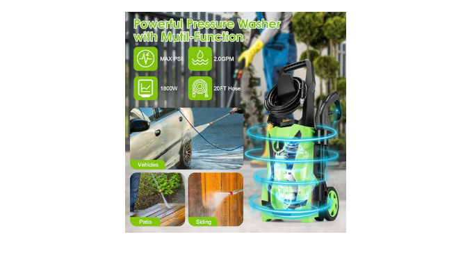 ✓ 1700W POWERFUL MOTOR : 1.8GPM for superior cleaning power. A 20-foot high-pressure hose and a 35-foot power cord allow for flexible use in large areas.The Homdox Pressure Washer for cleaning cars,bicycles,fences,patios,sidewalks,sidings,garden,yard,outdoor furniture and more.Save your time and money.