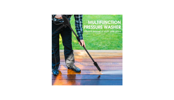 ✓ More durable & Maximum safety: Our electric power washer features safety automatic total stop system (TSS), which automatically shuts off the pump when trigger is not engaged to save energy and prolong pump life. The spray gun has a safety lock which is safer and more reliable. The unique plug-in spray gun makes it more convenient.This pressure washer is IPX5 waterproof and features a GFCI plug to prevent electric leakage, allowing you to safely operate this machine without any safety concerns