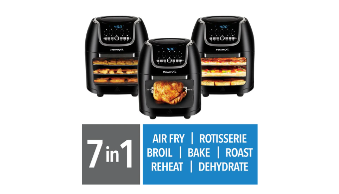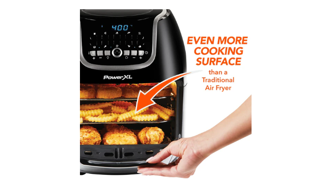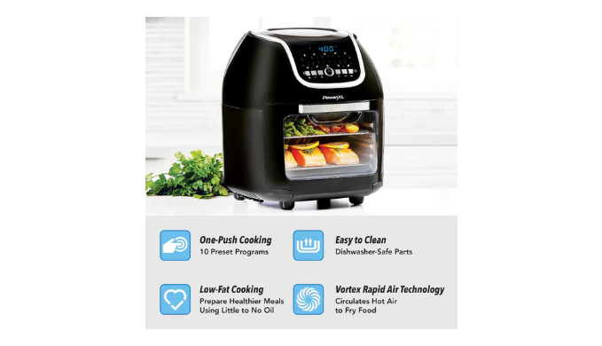 The PowerXL Vortex Air Fryer Pro Plus gives you precise, superior crisping power and extra-large 10-qt. cooking capacity ideal for families and gatherings. Rapid Vortex Air Circulation with advanced heating elements cook and crisp your food in a whirlwind vortex of superheated hot air for the perfect, golden-fried taste and texture on all sides without added oil. 10 Pre-Programmed Smart Settings with precise temperature control let you air fry, rotisserie, bake, roast, dehydrate, make homemade pizza, and so much more to delicious, even doneness. Enjoy golden-brown French fries and onion rings you thought were off limits or make fish, chicken and burgers with a crisp outside and tender inside. You can even roast fresh meats and vegetables, bake homemade doughnuts, or dehydrate fresh fruit. There’s no added butter, oil, or lard required, saving you up to 70% calories vs. unhealthy deep-fried food. Dishwasher-safe parts make clean-up fast and easy.
