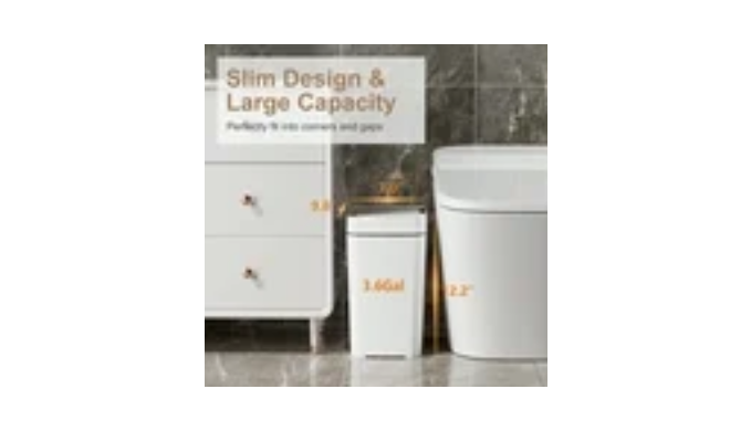 PRETTYCARE Touchless trash can is only 7 inches wide, making it perfect for fitting in narrow gaps. With 3.6 gallons large capacity, it can hold more garbage and keep your home tidy.