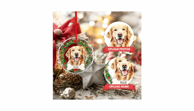 Personalized Christmas Ornaments: Click \"Customize Now\", upload a photo of your family, dad, mom, baby, dog, cat, puppy, or any pet, then add their picture and name. We will craft a unique Christmas decoration gift that will surely warm hearts. Imagine their delight when them receive this personalized surprise!