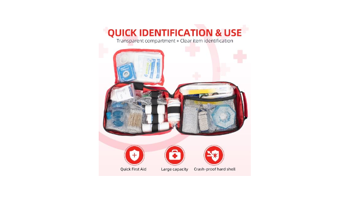 Zone Storage: The Prontee Aid travel first aid kit has multiple storage areas. Well-organized first aid items with clear item labels save you from struggling to find what you need in an emergency, thus buying precious time for treatment.