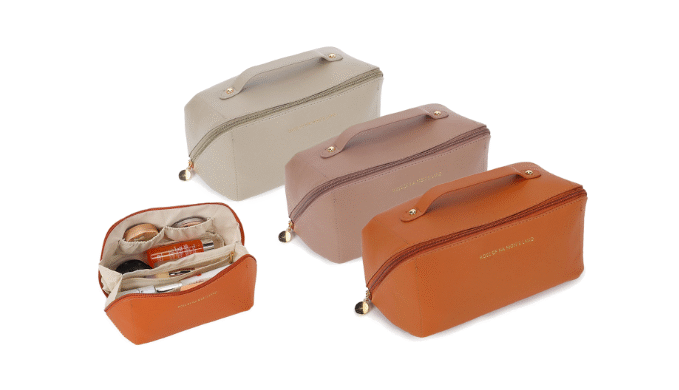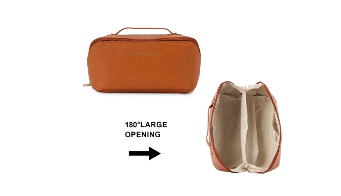 PU Leather Travel Wide-Open Toiletry Bag Makeup Large Capacity Organizer