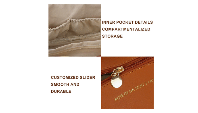 · MULTIPLE COMPARTMENTS: The makeup bag has 1 middle zip pocket divider and 3 side open pockets with elastic cuffs for holding your different makeup / skincare products / cosmetics like powder foundation, lotion, cream, palette, lipsticks, perfume and so on.
