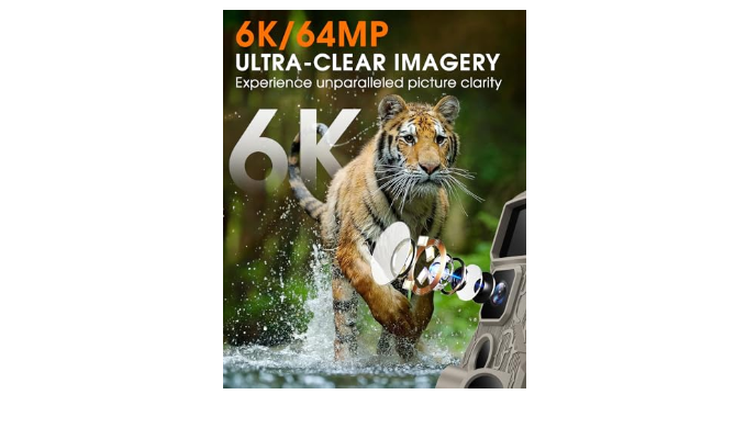 【6K Video & 64MP Still Image】Experience the unparalleled clarity of wildlife moments with Punvoe game camera\'s cutting-edge image sensor technology and premium starlight optical lens. Capture stunningly detailed 64MP still images and immersive UHD 6K videos with audio. Whether using it as a game camera or WiFi trail camera, relish the vivid clarity like never before.