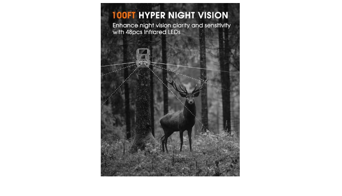 【Instantaneous Shooting Activation】Stay connected to the natural world seamlessly with Punvoe\'s game camera. Its rapid motion detection triggers instantly upon sensing any animal movement within its expansive 100ft surveillance range. Enhanced with cutting-edge night vision and motion activation technology, this WiFi trail camera ensures swift recording in 0.05 seconds upon detection, guaranteeing precise capture of every dynamic wildlife moment, day or night. Plus, its waterproof capability ensures reliable performance in any weather condition.