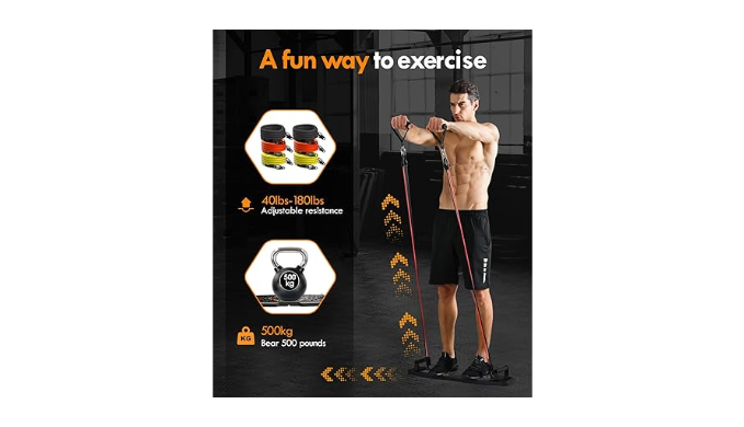 【Fitness System for Anyone】 Versatile home portable fitness device, We\'ve kept the professional push up straining, Added foldable fitness bars and wrist/ankle straps, Ab roller wheel and 6 resistance bands so You can perform more exercises. Light but stable enough. You can choose the intensity according to your ability.
