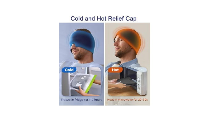 Dual Hot and Cold Relief Cap: The migraine mask offers both hot and cold options. For cold relief, refrigerate the hat for 1 hour. For hot relief, microwave at room temperature for 30 seconds. Refer to the instruction manual for details