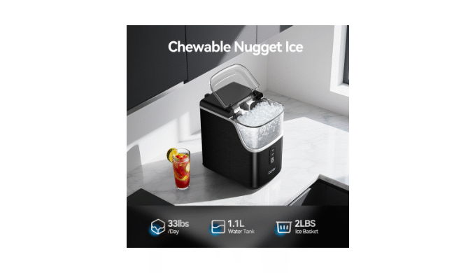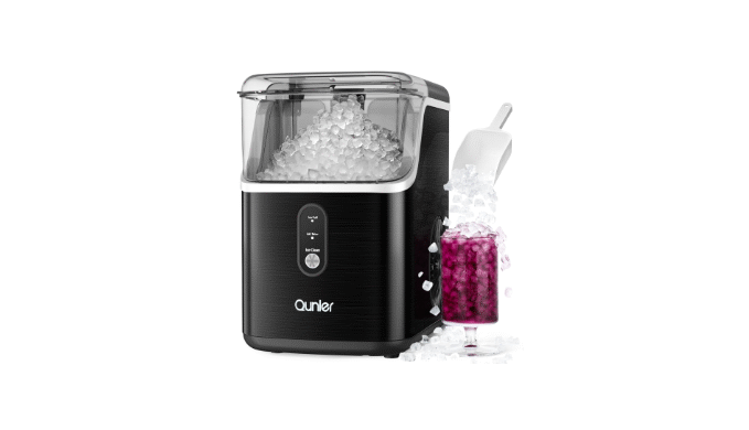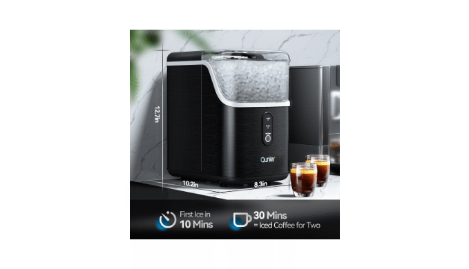Qunler Ice Maker: Get chewable style ice in 6-10 mins! Perfect for drinks/snacks. Fast, teeth-safe nuggets. ETL certified & 1-year warranty.