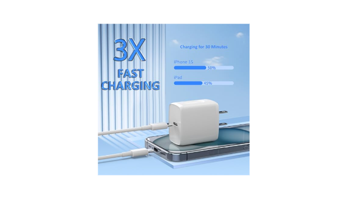 20W High-Speed Charging: Enjoy fast charging with 20W max output for your Phone, it’s 3 times faster charging speed than original 5W charger.Charge quickly and efficiently, boosting your iPhone 15 to 60% in just 30 minutes.