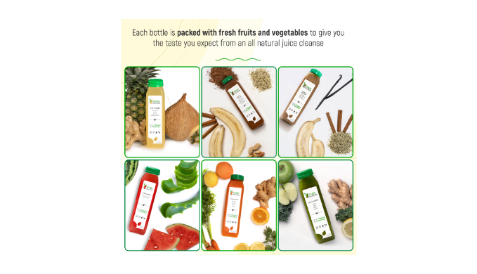 Drink 6 different juices daily 1.5-2 hours apart. If you can’t finish all of the juices, do not worry. Drink them as a snack at a later time.