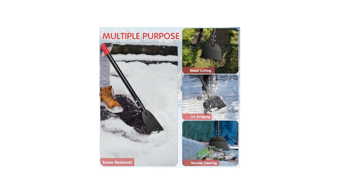 MULTI-USE SNOW SHOVEL: The flat shovel is ideal for clearing light to medium snow and ice from driveways, sidewalks, pathways or steps, also good for cleaning the ground and cutting weeds when weather is warmer