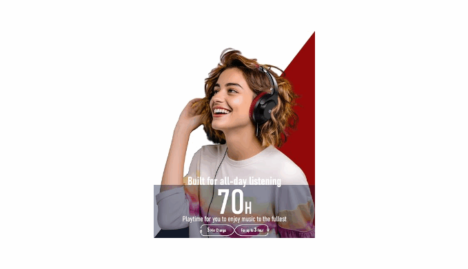 [70-Hour Playtime & Fast Charge] Experience significantly reduced charging frequency. Under typical use, this headphones wireless can provide up to 70 hours of playback, designed to easily cover days of regular use on a single charge, keeping you immersed in your audio for longer