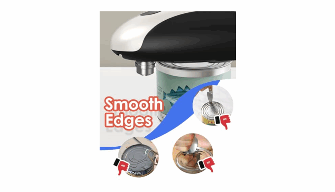 【Smooth, Safe & Hygienic Cutting】:This electric can opener features a precision stainless steel blade that cleanly cuts along the can\'s edge—leaving smooth, safe lids with no sharp risks. The blade never touches your food, ensuring hygienic operation and easy resealing. (Not for pull-tab or soda cans.)