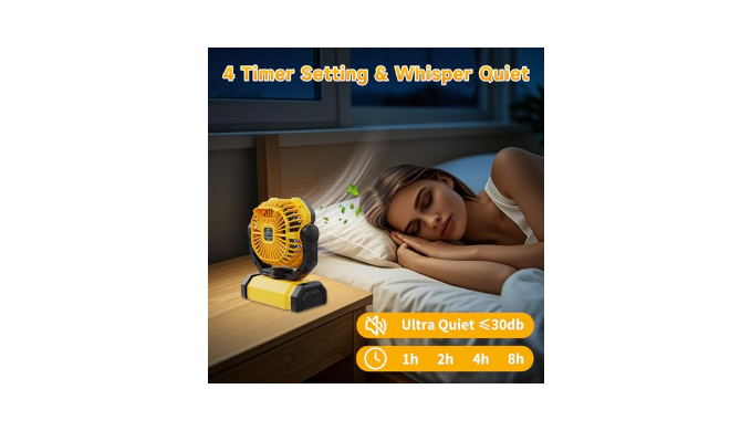 4 Timer Setting & Quiet Camping Fan: Portable fan for travel supports 1/2/4/8 hours of intelligent timing, avoid overnight power consumption, peace of mind to sleep. In addition, battery powered fan use brushless motors and upgraded fan blades to provide strong wind while keeping the noise below 30 dB, creating a quiet and cool sleeping environment.