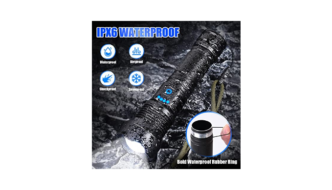 【IPX6 Waterproof】IPX6 waterproof flashlight is made of high-quality materials and has a waterproof rubber ring, it is waterproof, anti-slip, and impact resistant. Note, please do not submerge this hiking flashlight directly into water or discard the dust cover of the charging port as these may directly damage the camping flashlight. It is very suitable for use in rain, snow, or bad weather outdoor activities situations.