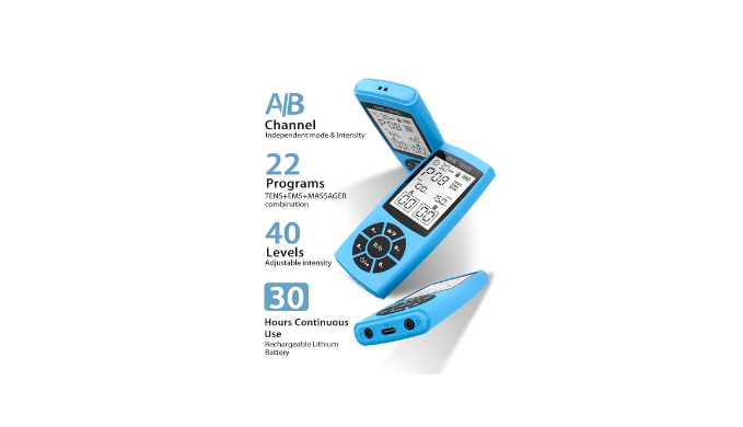 [Pocket size but huge power] - This electric tens machine built with a powerful lithium battery for 30 hours of continuous therapy. This tens machine makes it possible for you to relax any time at anywhere, in your house, office, car or travel on the go.