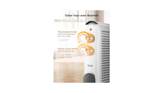 Customize Your Warmth: With two easy-to-use controls—a thermostat knob and a power level knob—this portable electric heater lets you easily adjust the temperature and choose between 750W (\'I\') and 1500W (\'II\'). Embrace tailored warmth at your fingertips