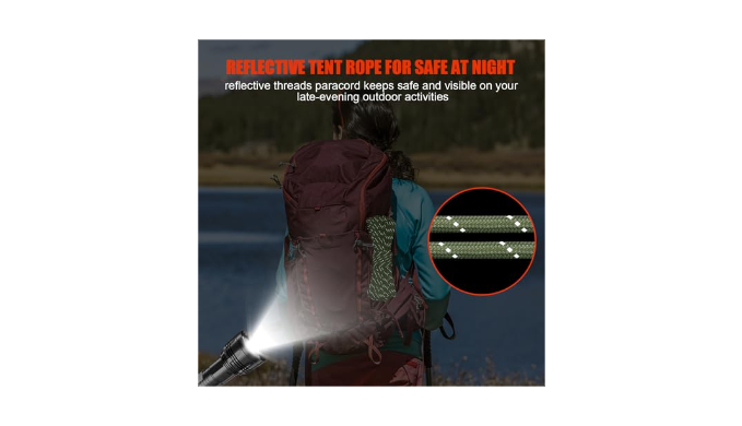 MULTIPURPOSE REFLECTIVE ROPE: When illuminated by flashlights, lanterns or even moonlight, it has a reflective effect and is very eye-catching. At night, the ropes around the camping tent are carefree. Ideal for crafting custom accessories: lanyards, bracelets, dog collars, keychains, belts, wrapping axes, knives, tools & other DIY projects. Serves as a safety rope in emergency situations.