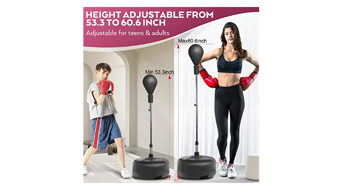 【Adjustable Height (53.5 to 60.6\")】You can adjust the ball to varying height positions ranging from 53.5- to 60.6 inches which allows both of you and your kids to have it! It would be a perfect gift for both of you! Regular boxing training can train your reaction ability, your strength, and your punching accuracy, can truly improve hand-eye coordination