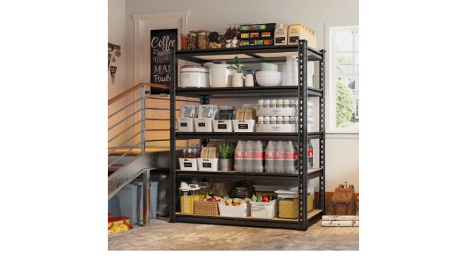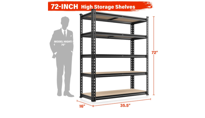 - The 5-tier metal shelving unit not only expands your storage space but also brings maximum convenience to home organization, keeping your space tidy and orderly.