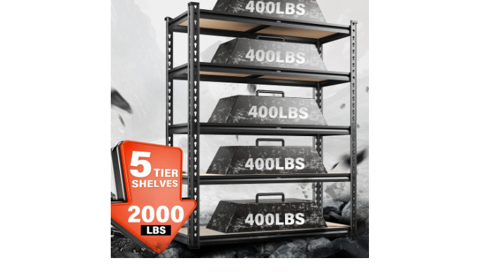- ② Superior Load Capacity: Each shelf can bear 400 pounds, and the total weight capacity of the entire metal shelving unit is 2000 pounds. The 5-tier garage shelving unit ensures greater stability and strength, allowing you to store more items securely.